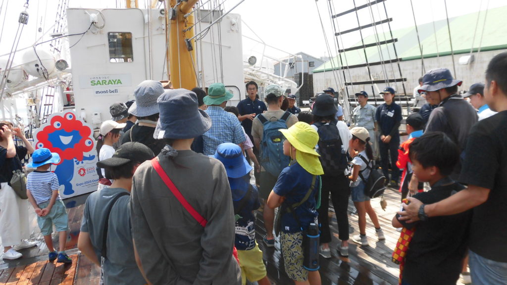 250人もの枠を超える申込みがあり、親子連れ、高齢者などが船内を見学し、スタッフの人たちと一緒に帆を張る貴重な体験をしました。