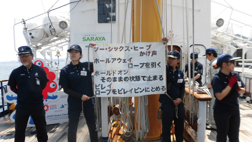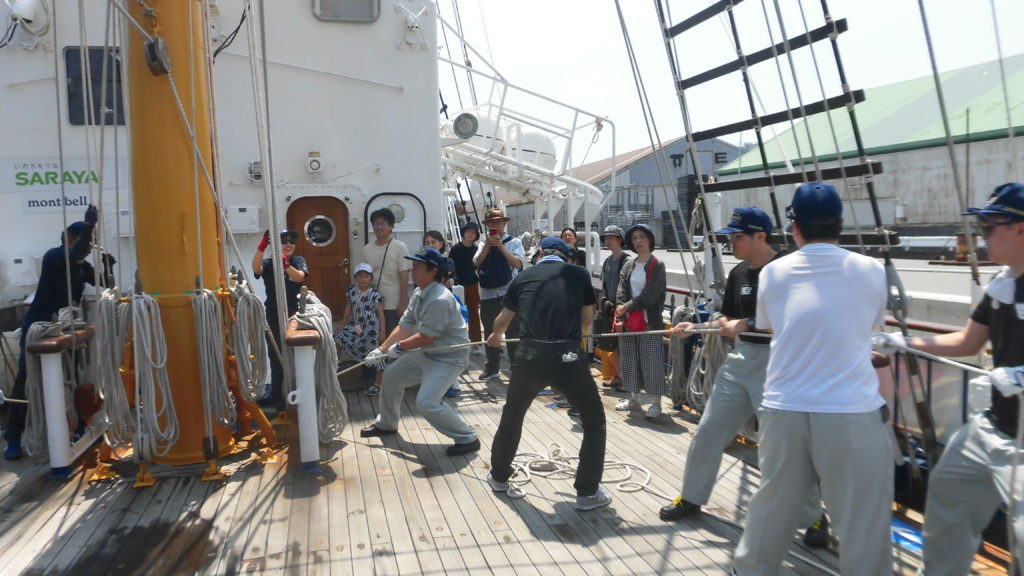 体験の前に船員さんから体験をするための注意事項や、掛け声をかけながらロープを引くなど、詳しい説明がありました。